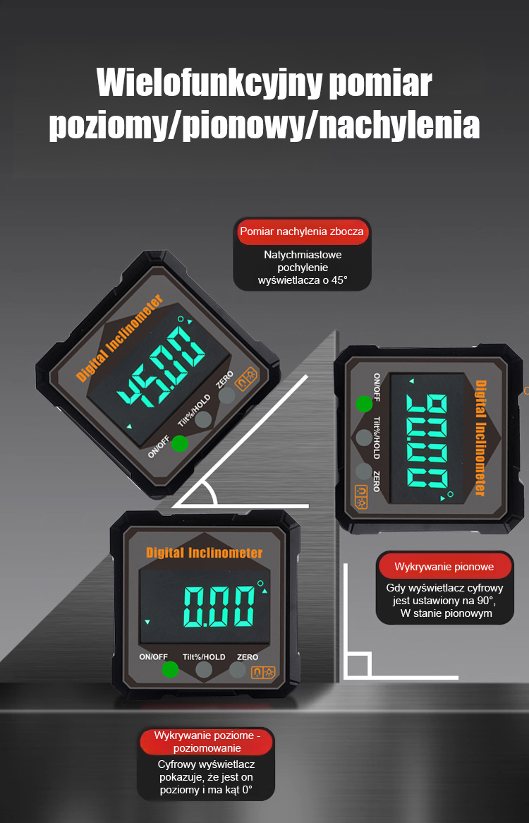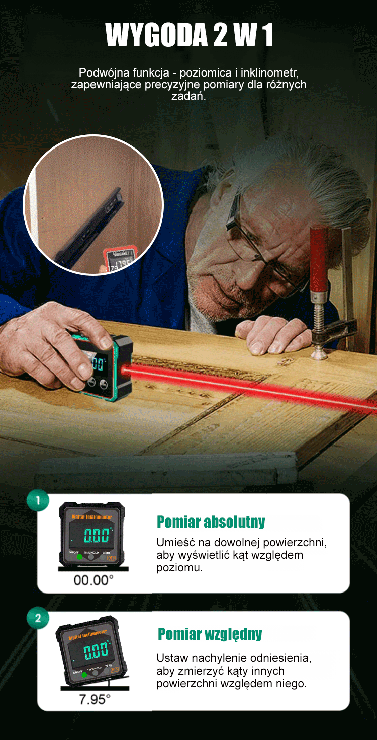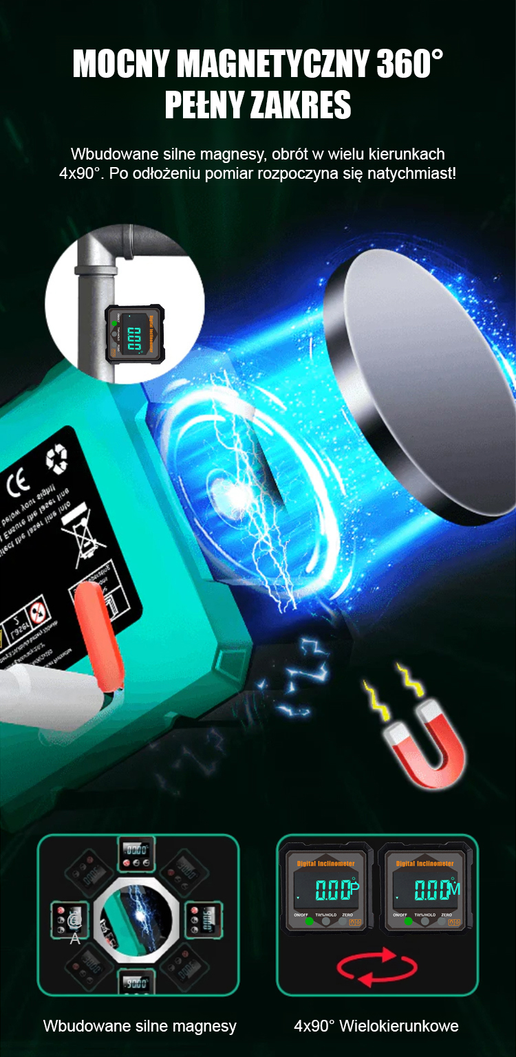 【Koniec z bałaganem w taśmach mierniczych!】⚙️ Silnie magnetyczny cyfrowy inklinometr i kątomierz. Wysoka dokładność.