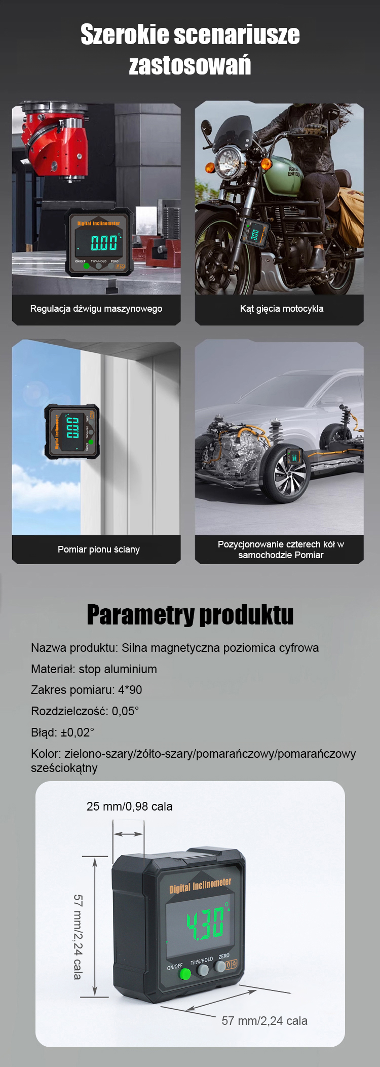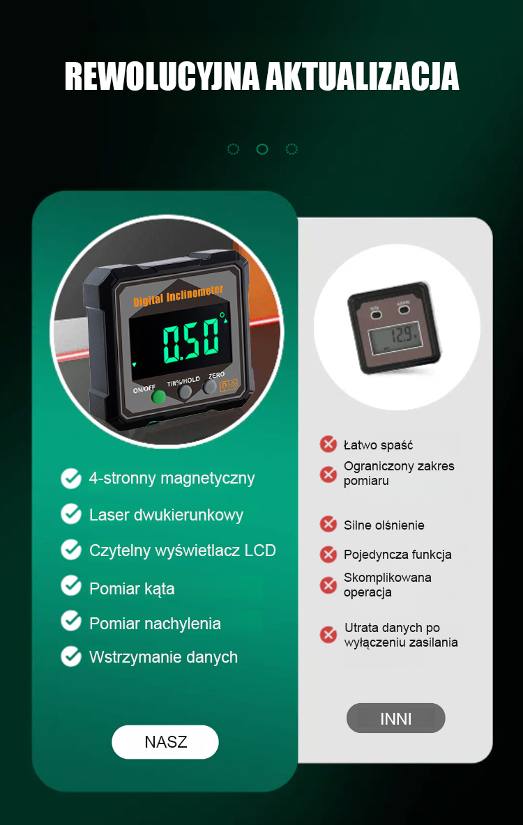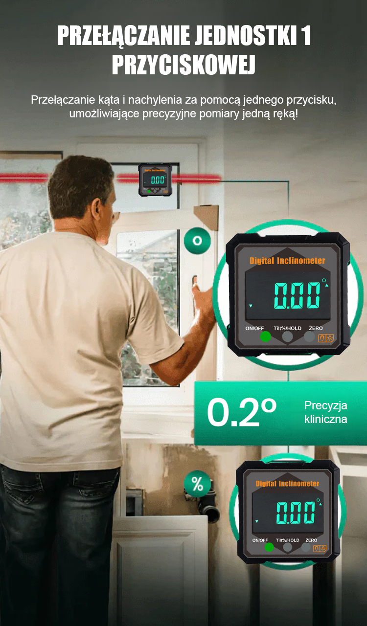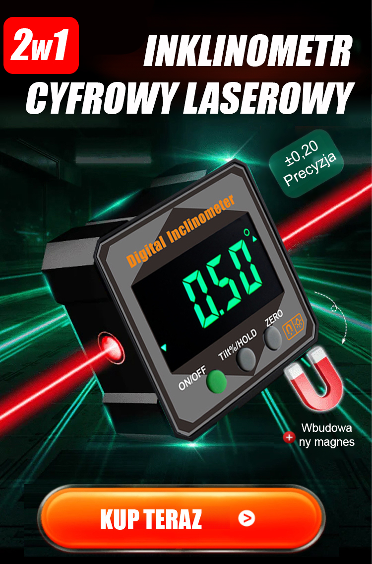【Koniec z bałaganem w taśmach mierniczych!】⚙️ Silnie magnetyczny cyfrowy inklinometr i kątomierz. Wysoka dokładność.
