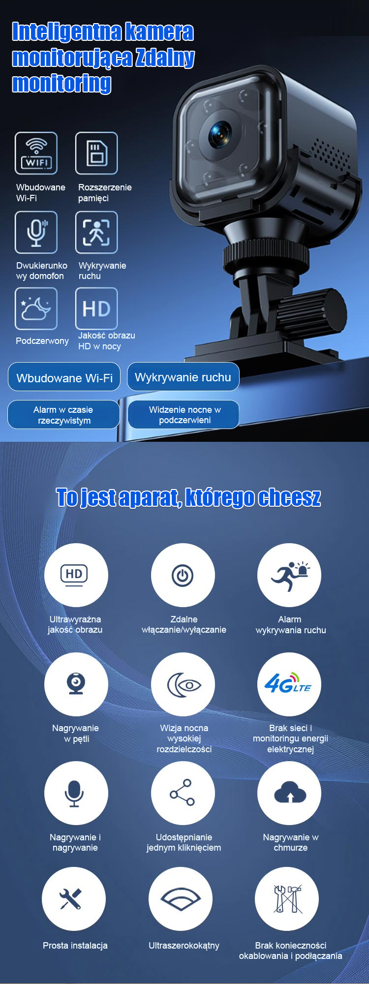 Kamera bezprzewodowa HD F1 – nowość 🔋 Możesz zdalnie oglądać i nagrywać w dowolnym miejscu i czasie.