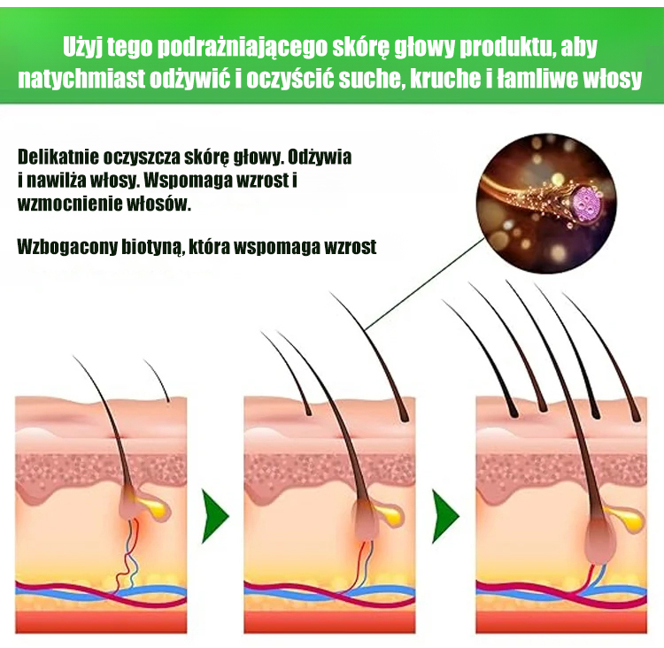 Szampon z ekstraktem ziołowym – Im mniej włosów, tym lepszy efekt ✨Naturalny wzrost, objętość i blask bez obciążania.