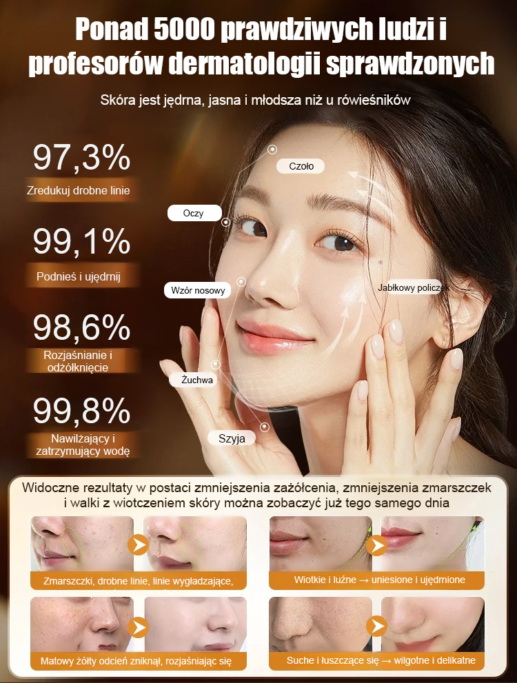 Zwalcz zmarszczki mimiczne, kurze łapki i wiotczejącą skórę dzięki profesjonalnemu liftingowi w domu. Skorzystaj z naszego 14-dniowego wyzwania „Przemiana”: jeśli nie zauważysz jędrniejszej, gładszej skóry, to nic nie kosztuje. Dodatkowo, skorzystaj z naszej rocznicowej oferty BOGO (kup 1, a 1 dostaniesz gratis) już dziś! Zostało tylko 50 miejsc – kliknij, aby rozpocząć swój rozświetlony dzień!