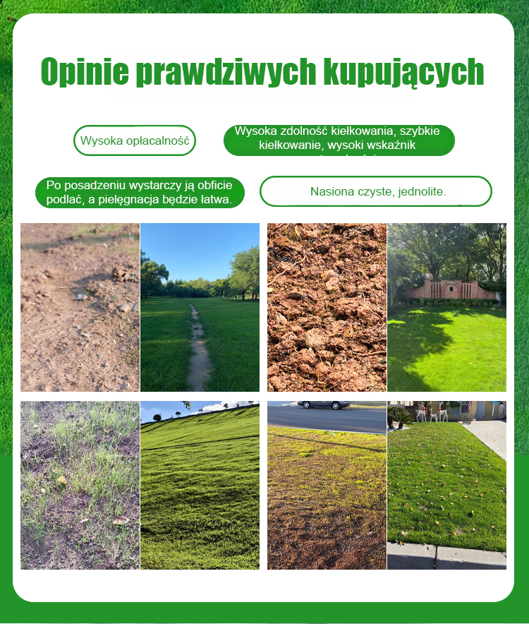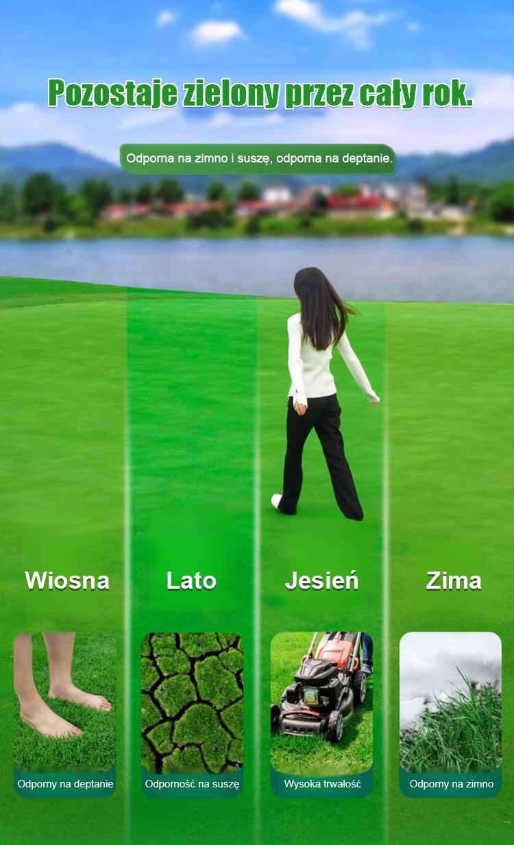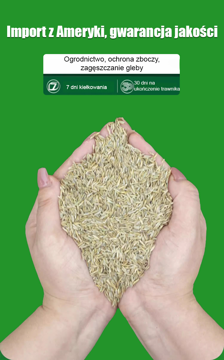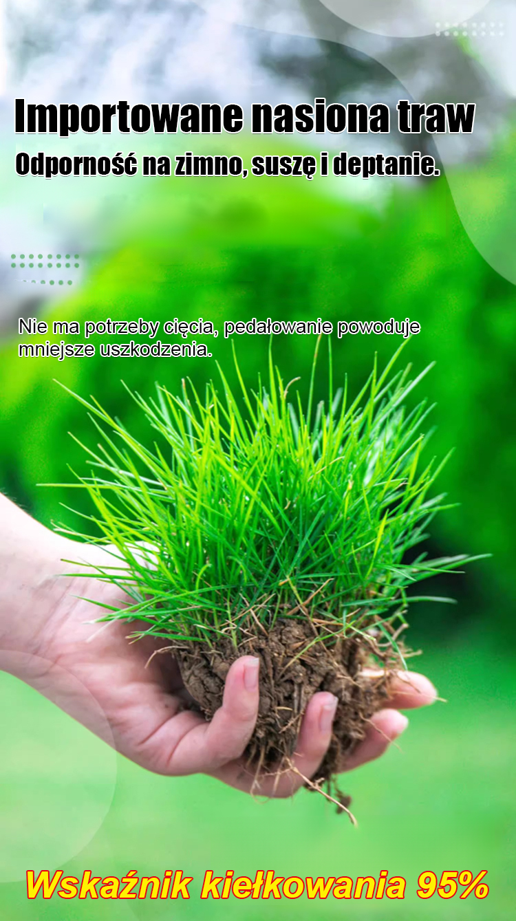 【7-dniowe kiełkowanie nasion trawnika】Niezależnie od tego, czy mamy upalne lato (+40°C), czy mroźną zimę (-20°C pod śniegiem), Twój ogród pozostanie soczyście zielony. Wystarczy rozsypać nasiona: kiełkują w 7 dni, a po miesiącu tworzą gęsty, miękki dywan.